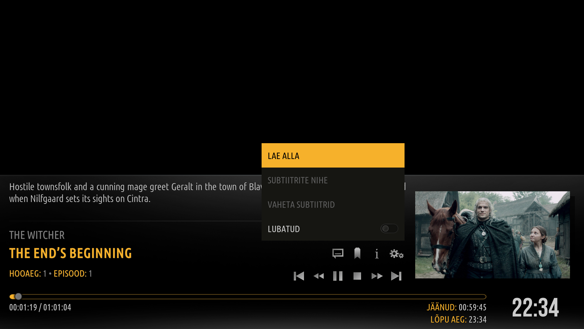 Netflix - töötab kenasti, mul on 4K toega Netflix. Kahjuks ainult eesti keelega on Netflixis kehvad lood, ehk lõviosa asju on ilma eesti keelse tõlketa (mis on jama). Hakkasime just vaatama The Witcher, eesti keeles Nõidur ja seal oleks eesti keelsed subtiitrid väga abiks, sest isegi raamatuid lugedes (kolm osa on kenasti eesti keeles olemas), on keeruline sõnakasutus. Netflixis on paljud asjad (enamus) ilma eesti keelsete subtiitriteta.