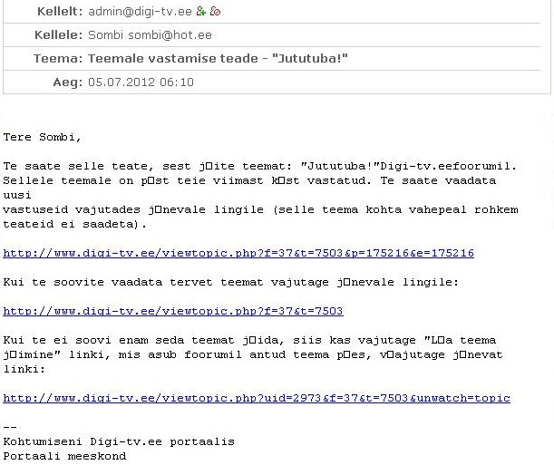 Ehk sobib siia teemasse. Mulle on tulnud kaks kirja uute postituste kohta, aga mitte kummaski teemas pole midagi uut näha. Samuti ei ole ka viimaste postituste hulgas neid näha. Kas mõni läbustaja on vanad teemad üles leidnud ja need postitused on kustutatud või on tegemist mingi kalaga? Pildid ka juurde, et asi selgem oleks.
