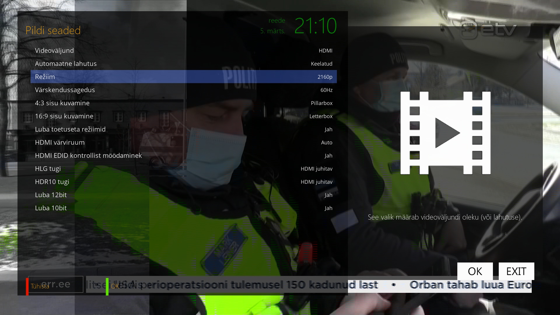 PS. Sina ära proovigi oma Ultra HD tuuneri väljundisse, selliseid seadistusi panna kuna peale seda,