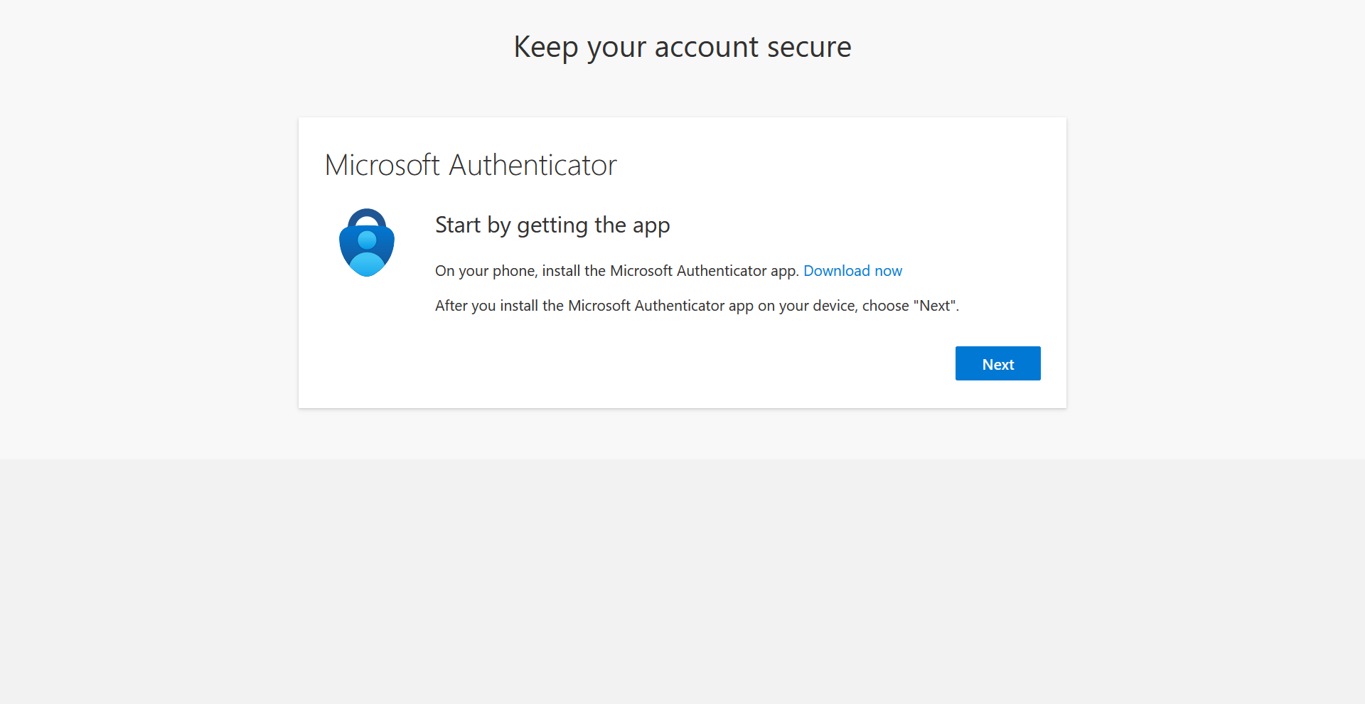 After you install the Microsoft Authenticator app on your device, choose "Next".