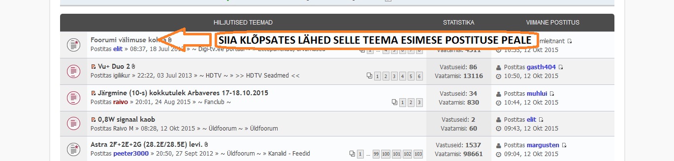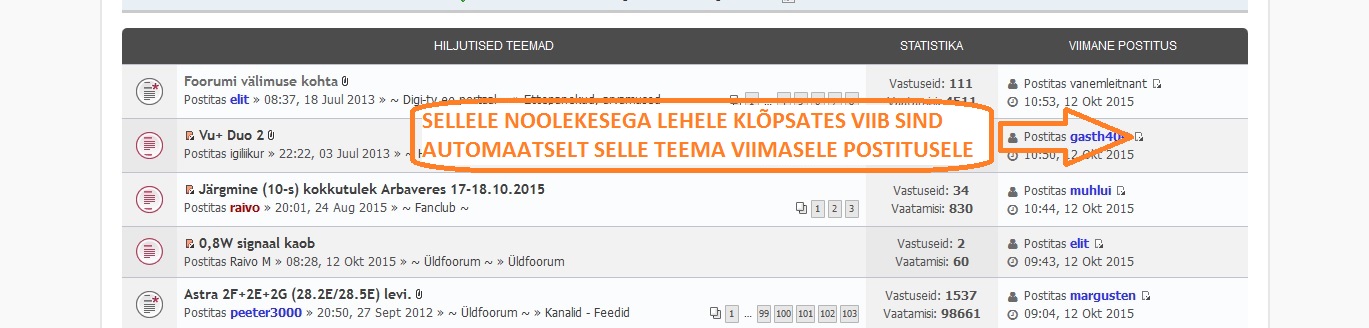Vahet pole kuskohast sa neid postitusi vaatad mitmest kohast saab valida aga alati pead sa numbriliselt valima neist viimase kui sa just ei taha mitme aasta vanuseid postitusi sirvida ma tahan sulle seda öelda et viiased postitused kõige uuemad valis vana foorum automaatselt mis oli hea minu meelest.