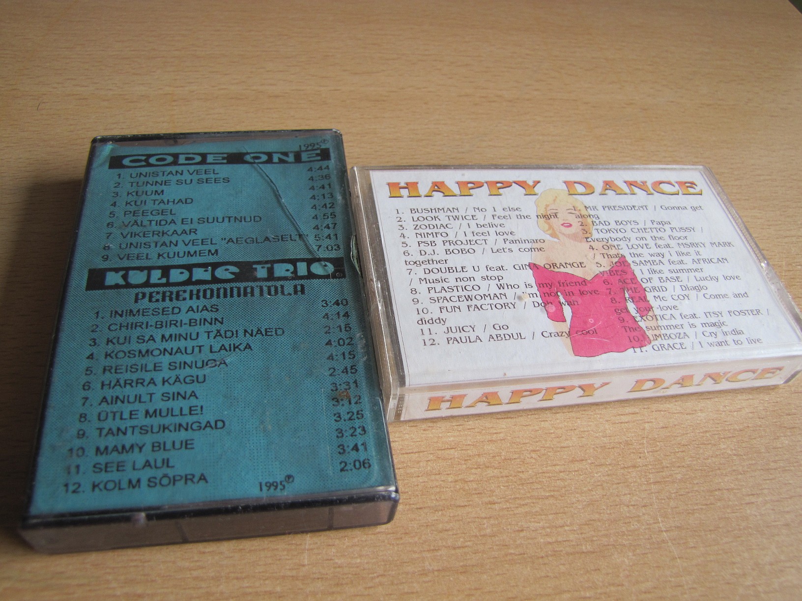 Kas sa ka tead, kuidas selliseid kassette müüki paisati? Mul õnnestus saada 55 minutiline poest, väidetavalt tühi, aga oh häda, polnudki tühi. Sellel oli "Tagasi paradiisis 2", mida oli küll üritatud kustutada, aga lood olid kõik ära tuntavad ja kohati isegi kuulatavad. Muide, kui sildi pealt tõmbasin, oligi all see sama trükitud kirimartinj kirjutas:Kassetihunnikust leitud tähelepanuväärsemad isendid