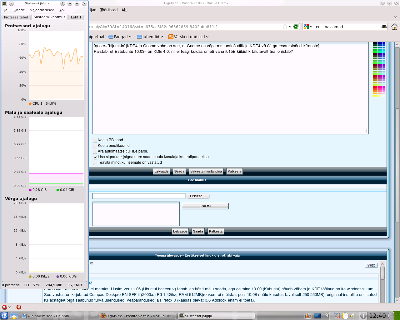 Opo kirjutas: Paistab, et Estobuntu 10.09-l on KDE 4.0, nii ei teagi kuidas ometi vana i815E kiibistik seda talutavalt ära lohistab?
